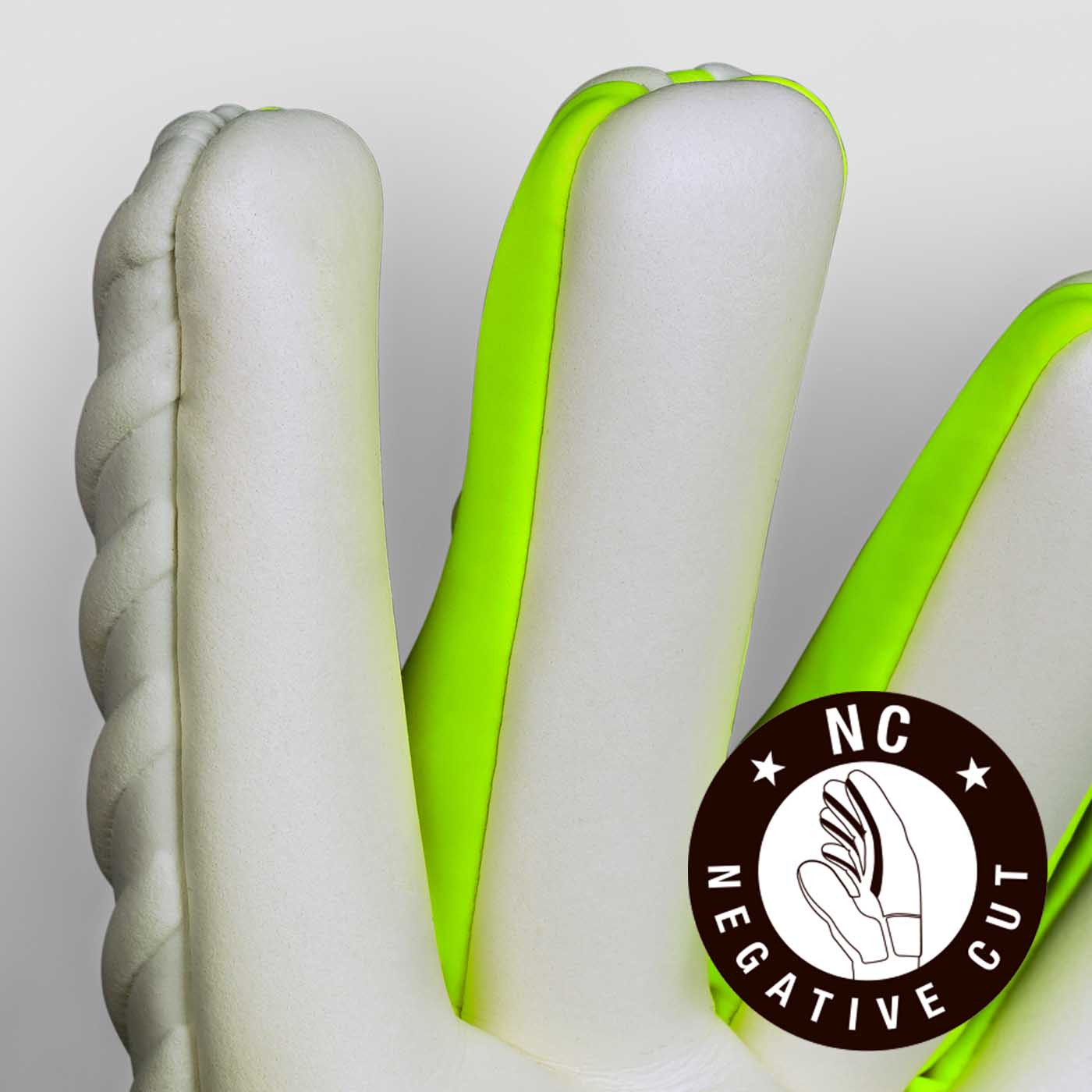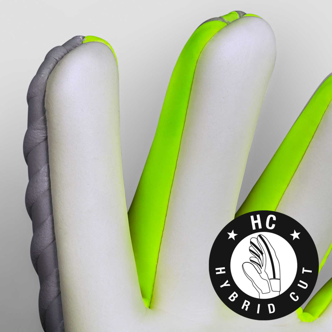 Hybrid cut er kendetegnet ved et asymmetrisk setup, hvor vi har fjernet sidekilerne ved pegefingeren og lillefingeren for at give endnu bedre boldkontrol og sensorisk feedback.